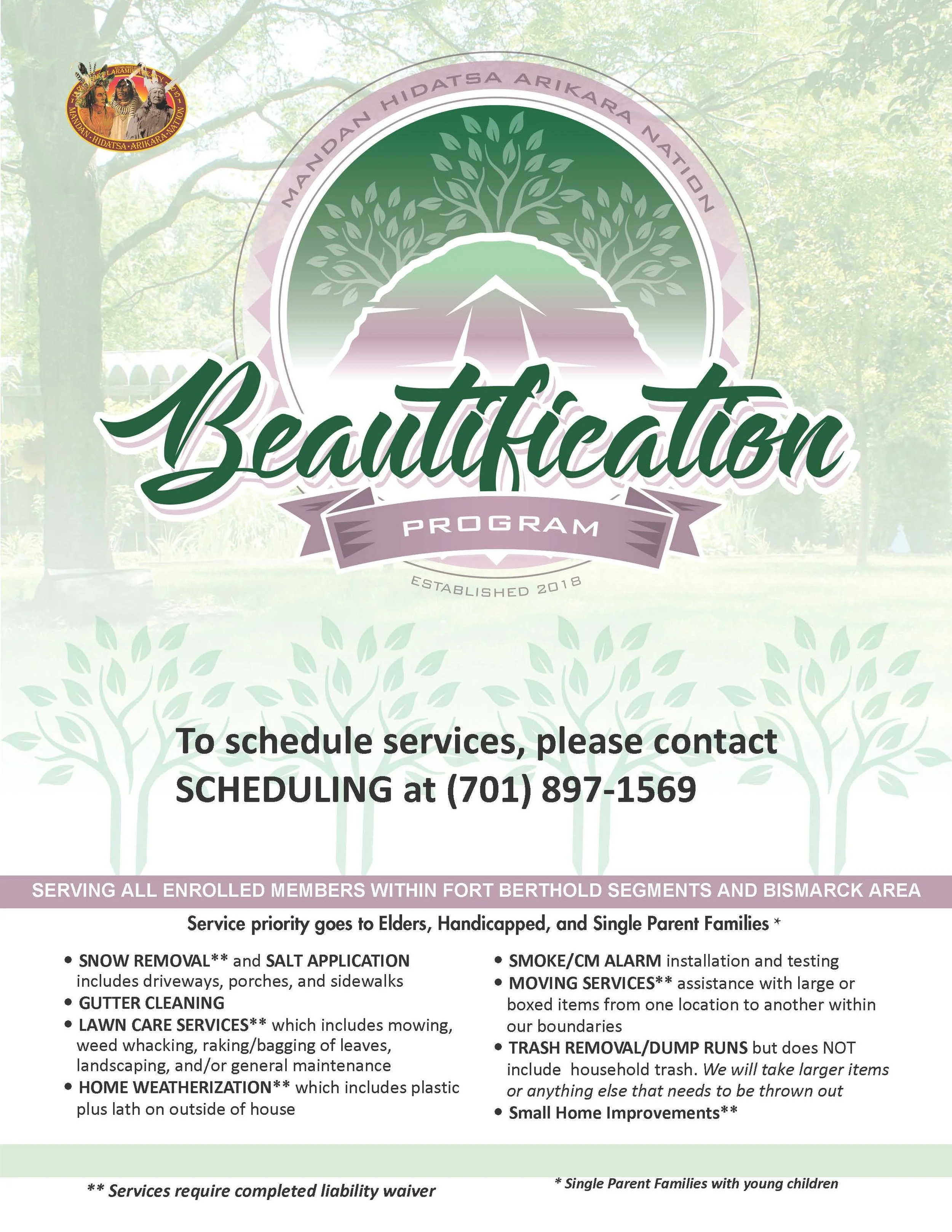 Completed applications and waivers can be submitted by: drop off at Beautification office, emailed to LJulian@mhanation.com or call 701.897.1569 to schedule an application pickup by your local crew.